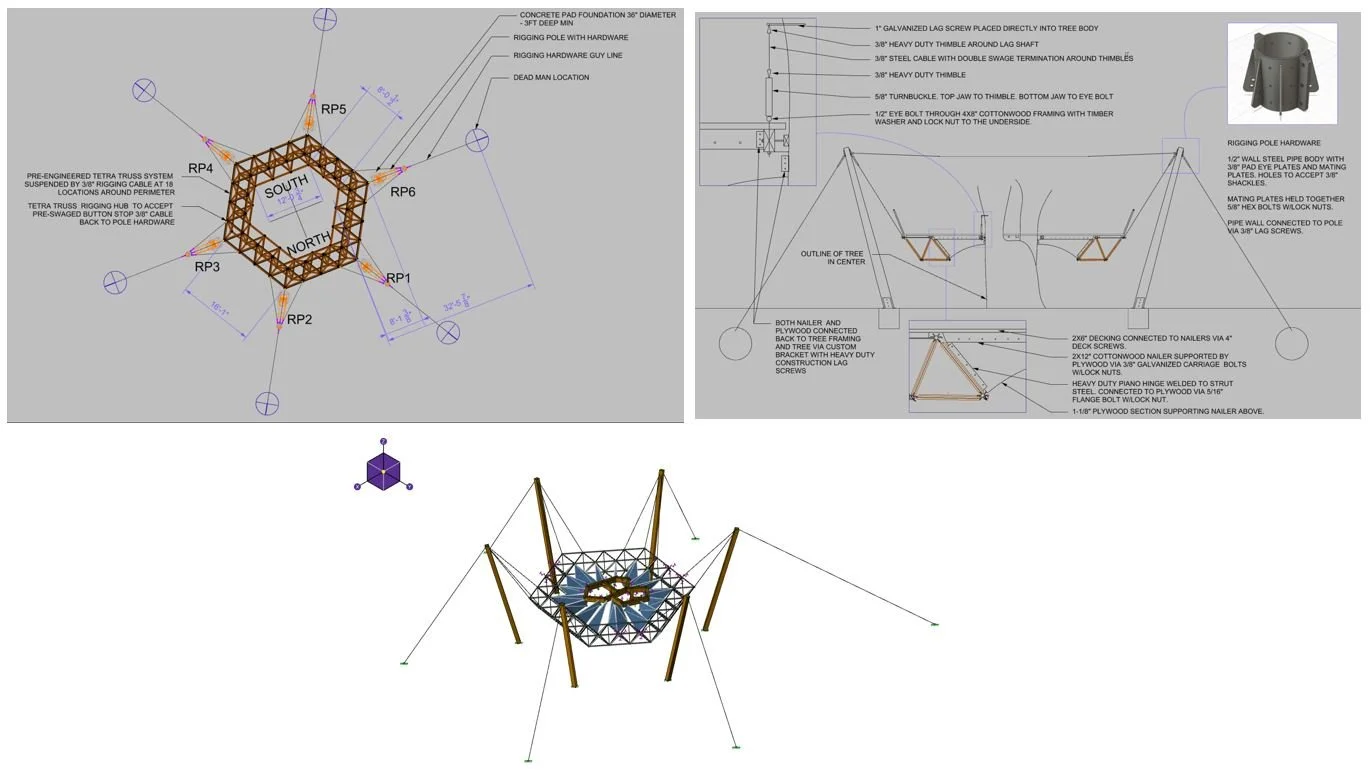 TetraTruss Platform Project - Colorado, USA Remodel Deck and Retaining Wall - Utah, USA Heavy Timber Cabin - Michigan, USA Power Shed Enclosure - Michigan, USA TetraTruss Tent Dwelling - Georgia, USA Satellite Dish Support Structure - New Jersey, USA Barn/Garage - Colorado, USA Cabin Rehabilitation Project - Utah, USA Public Park Bench Art Installation, Oklahoma, USA